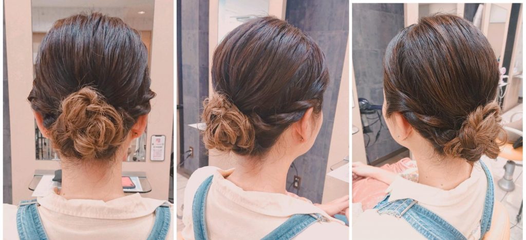 和装とはいえキッチリし過ぎも嫌だし、崩し過ぎもちょっと…結婚式お呼ばれヘア過ぎてもおかしいしという事で、ご希望を聞いて提案させていただきました。