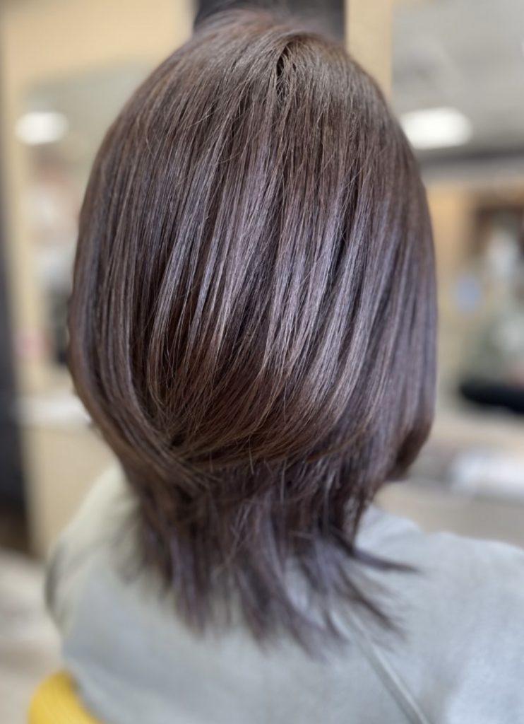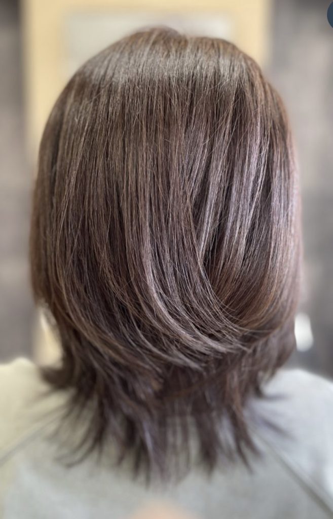 鎖骨ラインでベースを作ったら、トップにしっかりレイヤーを入れてふんわりとなるようにカットするのがポイントです。
