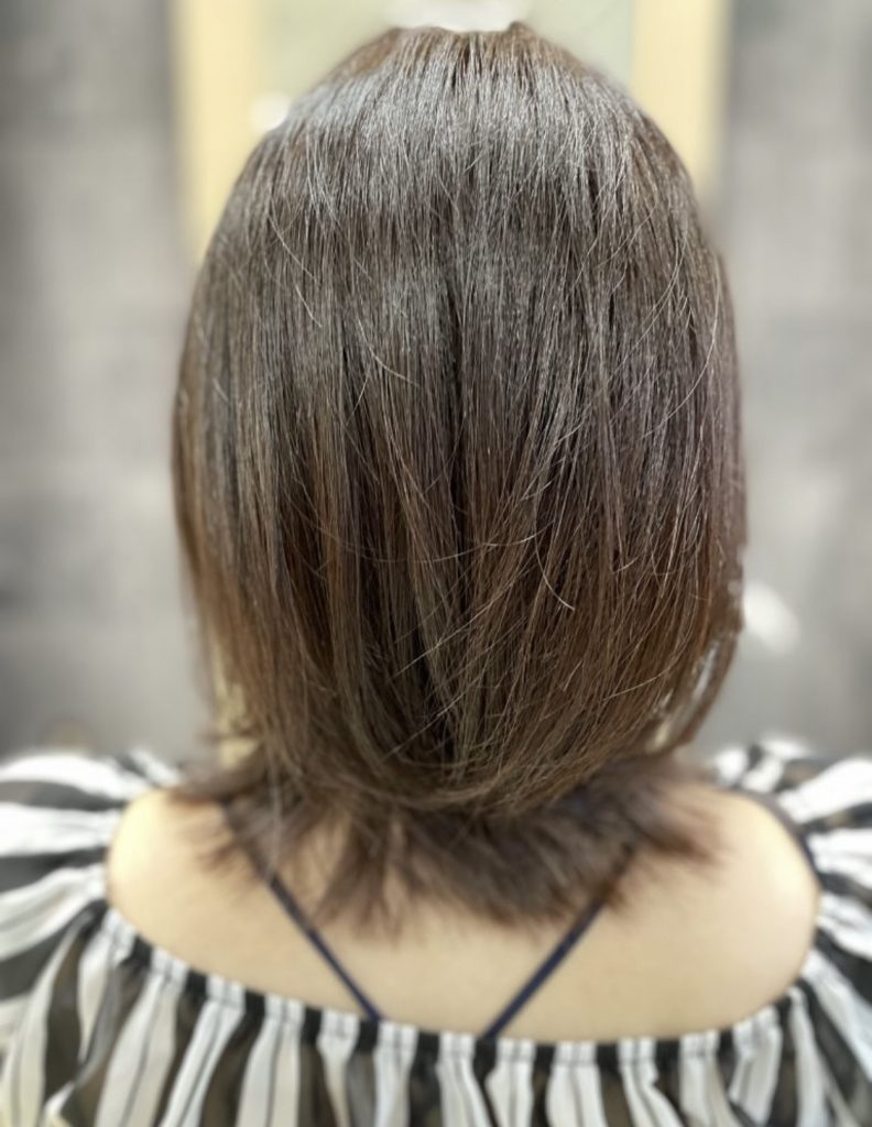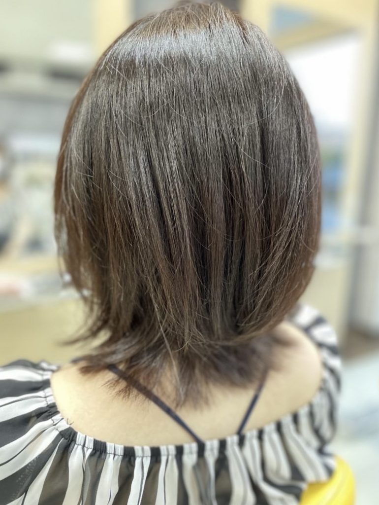 ナチュラルな外ハネヘアなのでスタイリング剤をつけるだけで簡単に決まります。