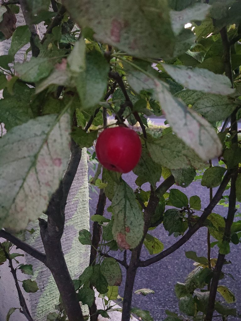 葉っぱはあまりキレイではなく、たま~に花が咲くのですが、今年は初めてリンゴがなりました!
