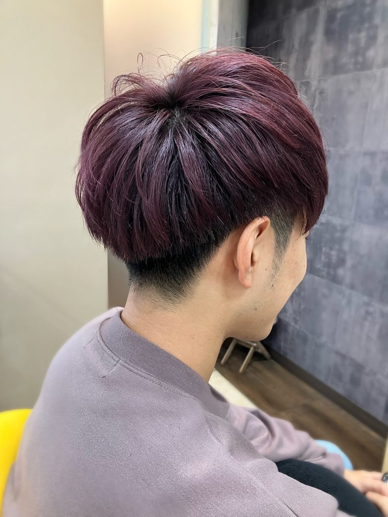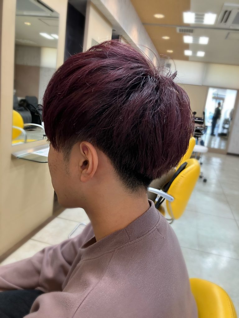 前回染めた寒色系の履歴を活かしてパキッとした赤にならないよう染めさせていただいてます!
