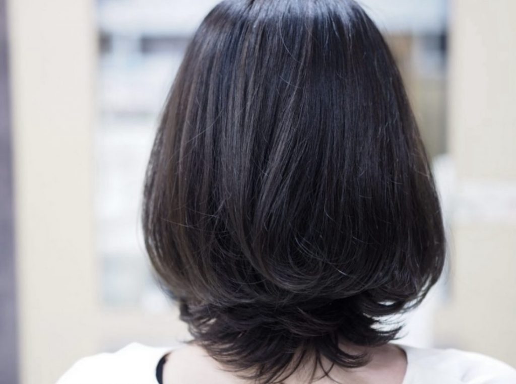 ハンドブローだけで仕上げた前下がりミディアムボブです。