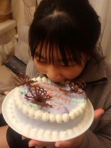 恒例のケーキ丸かぶりをして、大満足の娘っ子でした♪