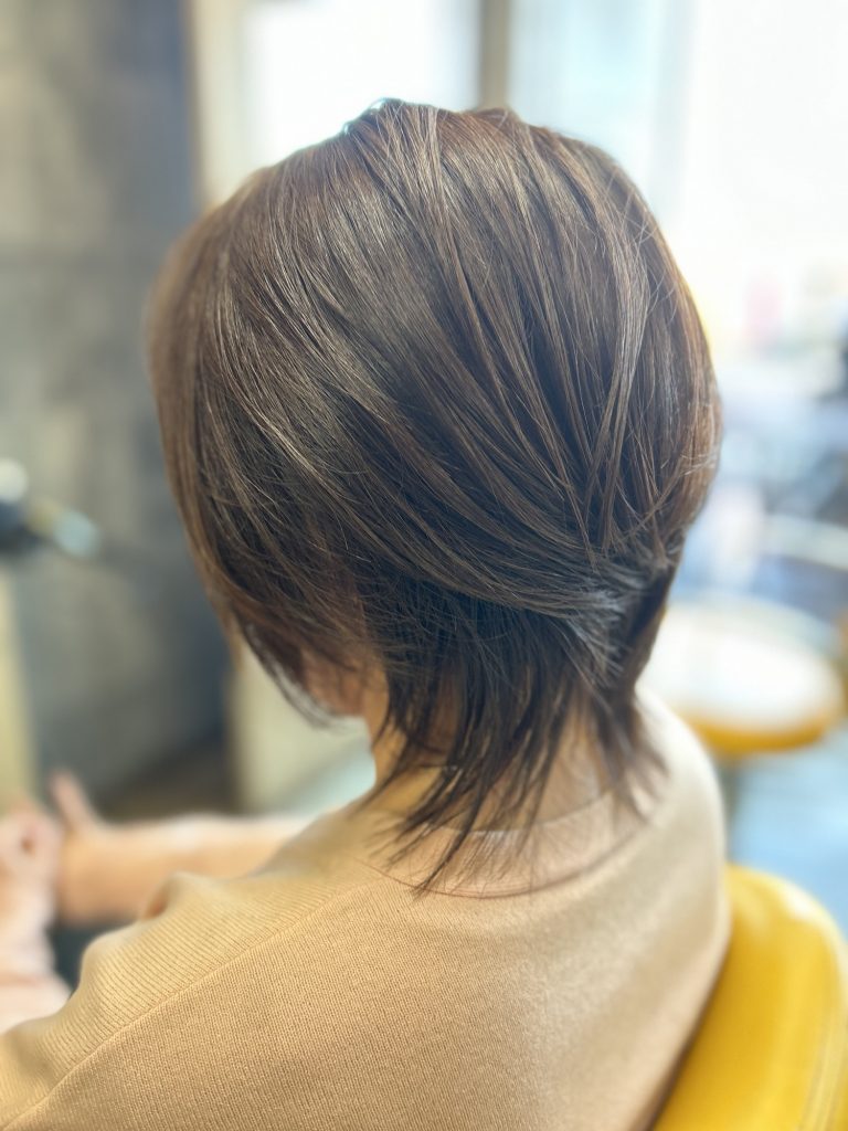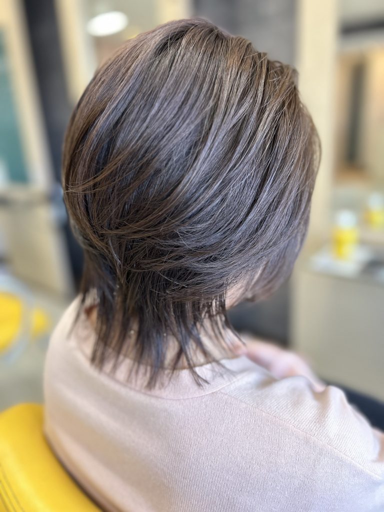 レザーでカットしたりレイヤーを適度に入れたりすることで、美しい毛流れを出してます。