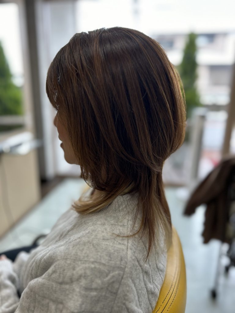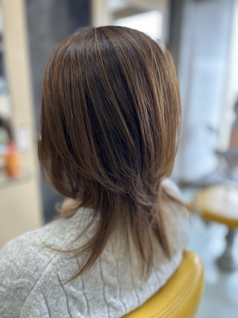 レイヤーがたっぷり入ったウルフヘアは、髪が硬くて動きが出しにくい人におすすめです。