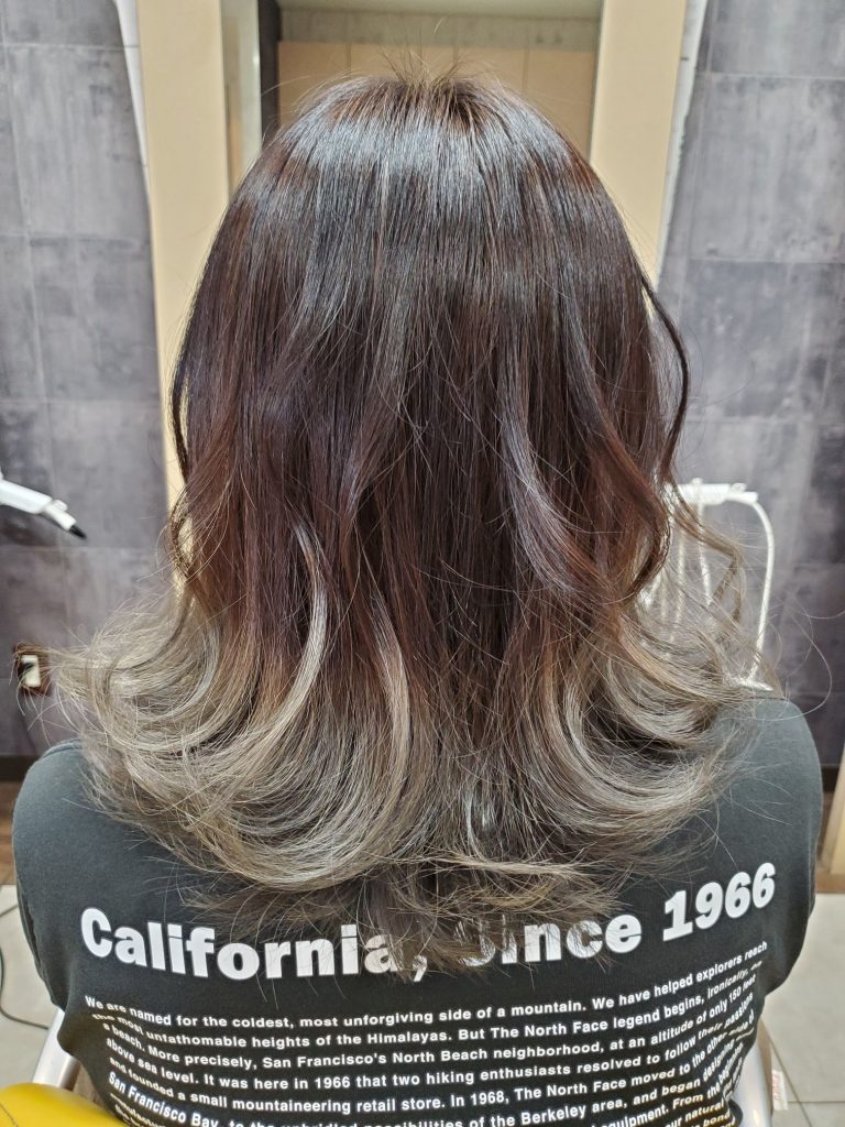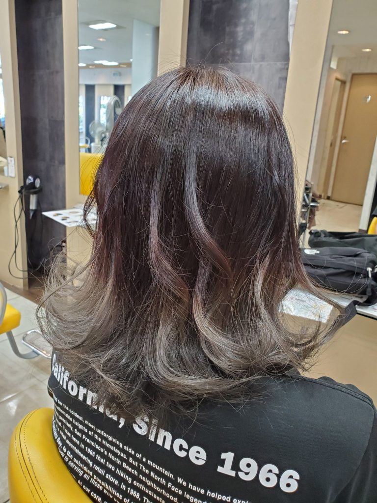 毛先はブリーチからのシルバーアッシュ色!