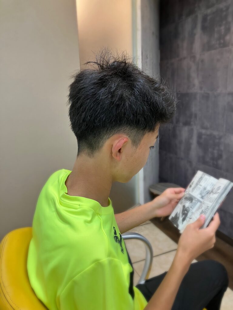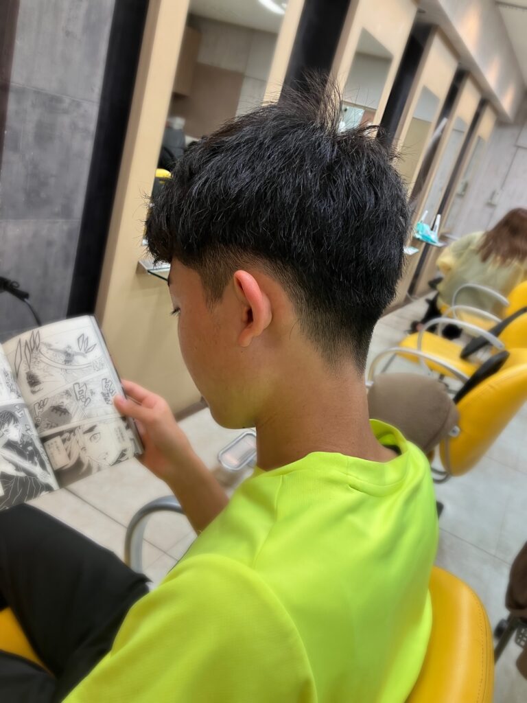 ツーブロックと後ろに刈り上げを入れて、ワックスをつけなくても自然に決まるように切らせていただいてます!
