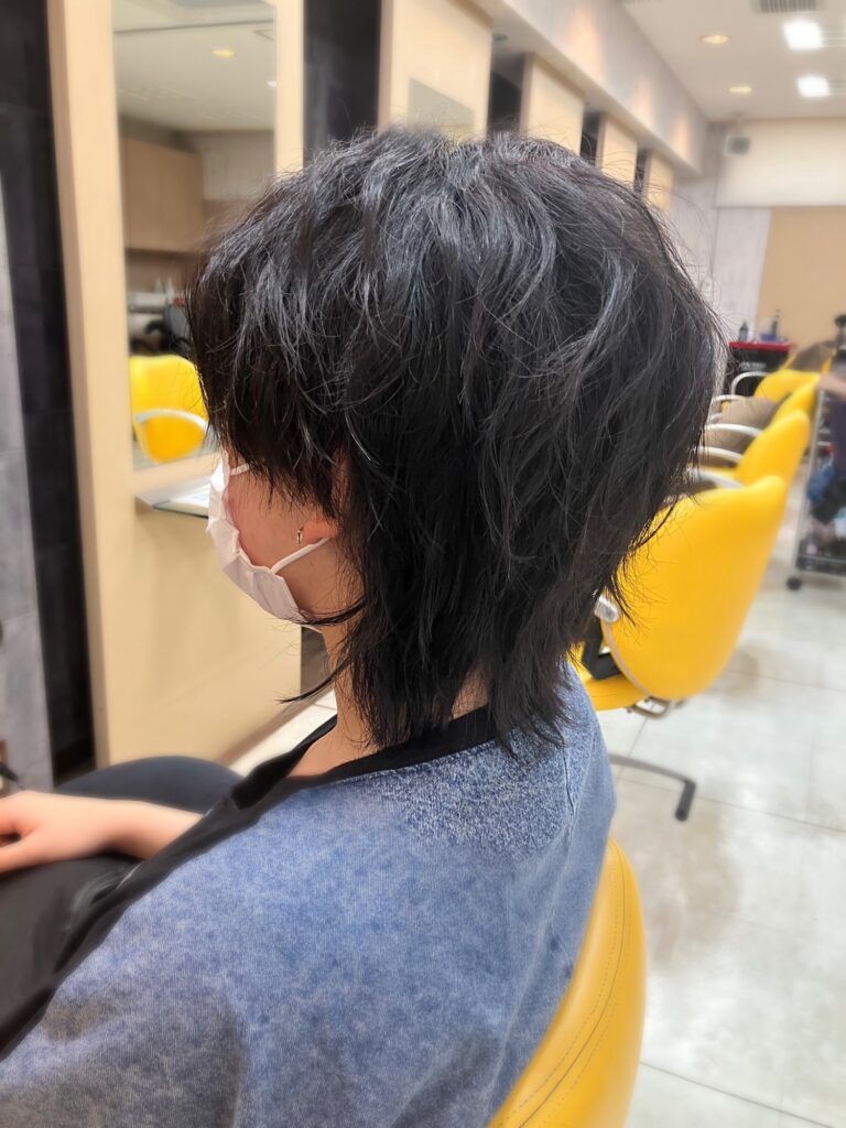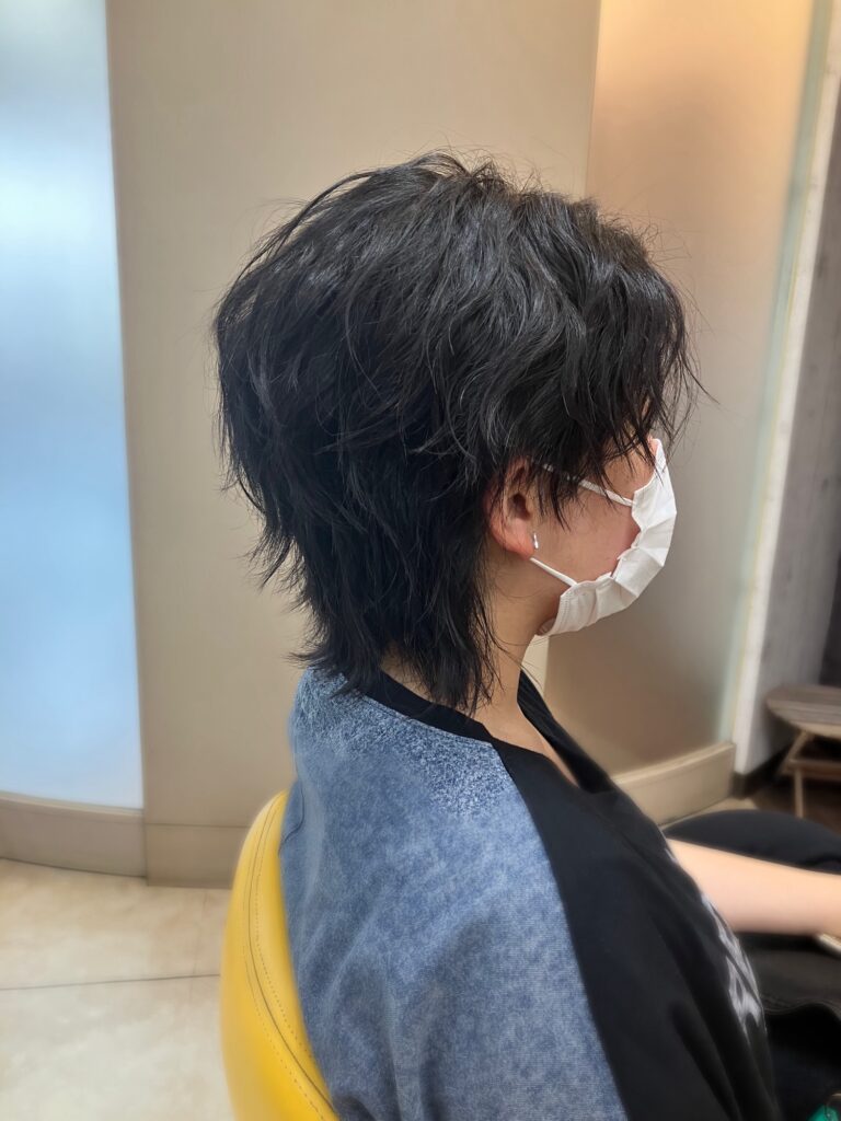 ウルフスタイルを波巻きで仕上げてカッコよく仕上げさせていただいてます!