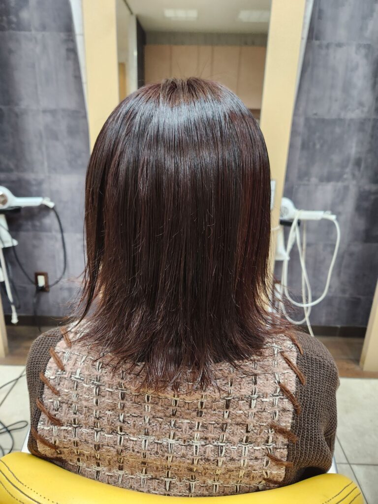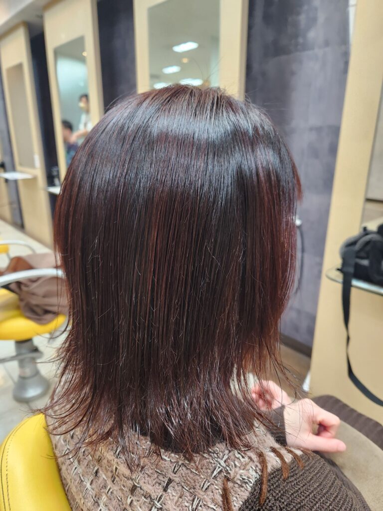 明るめのピンクを交互に染めました!