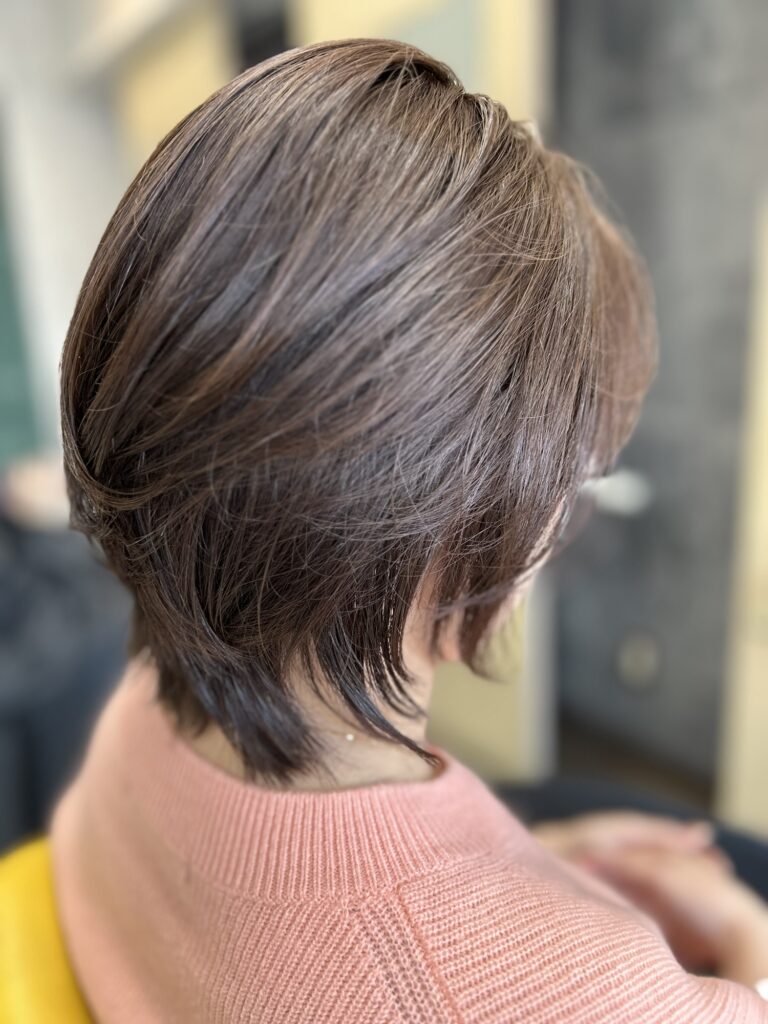 頭の丸みに合わせてカットしているので、ブローなしでもOKです。