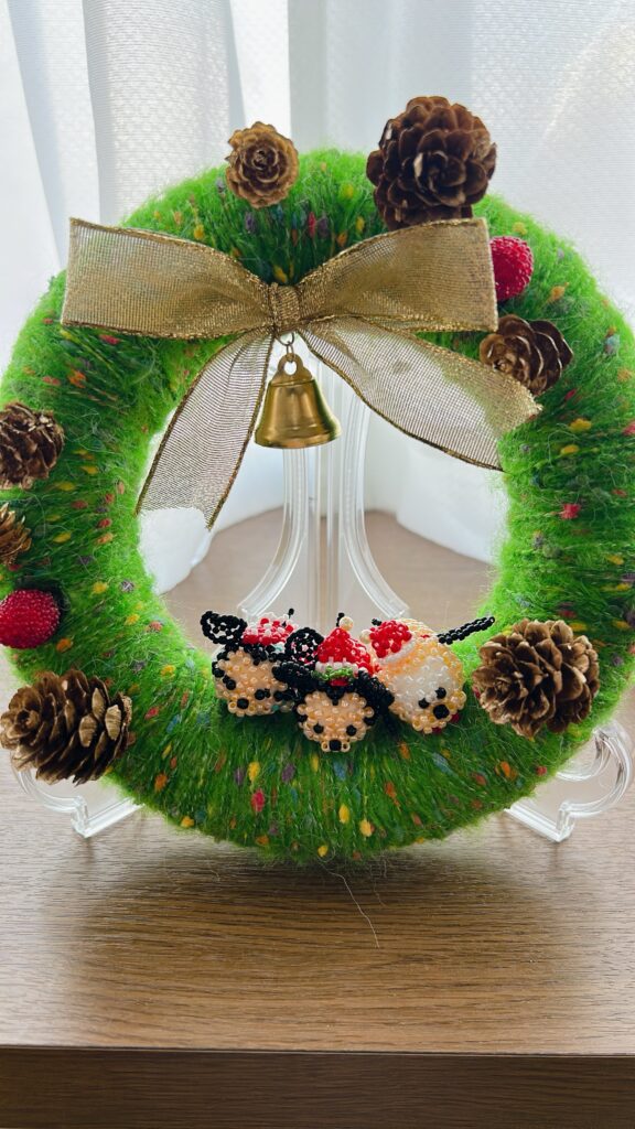 毛糸をぐるぐる回しただけですが、結構可愛くできました(^^)