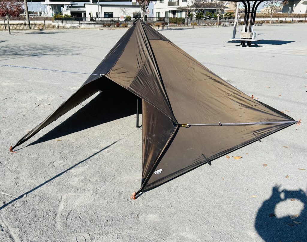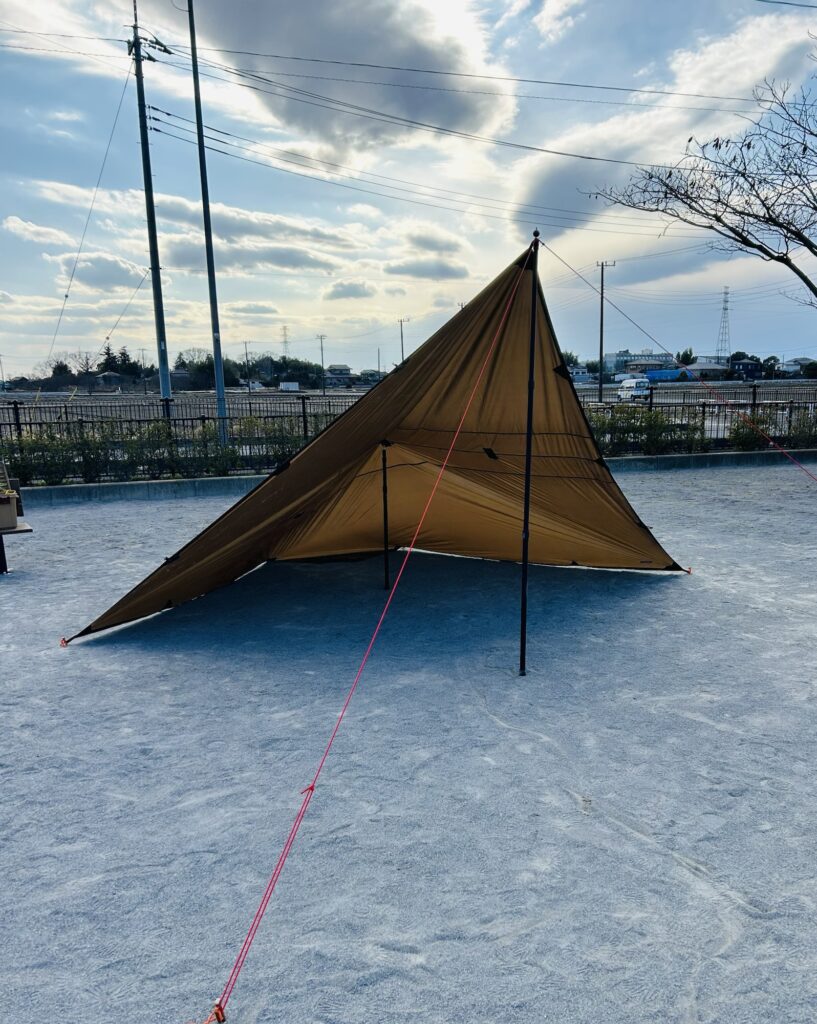 テント泊ではなくタープ泊がしたいので、近場の公園でタープ張りで遊んでみました。