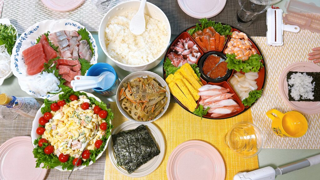 手巻き寿司にアイスケーキと豪華なご飯をみんなで食べました(^^)