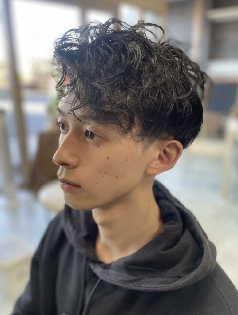 しっかりとカールが利いたツーブロマッシュ。パーマのおかげで仕上げも簡単です!