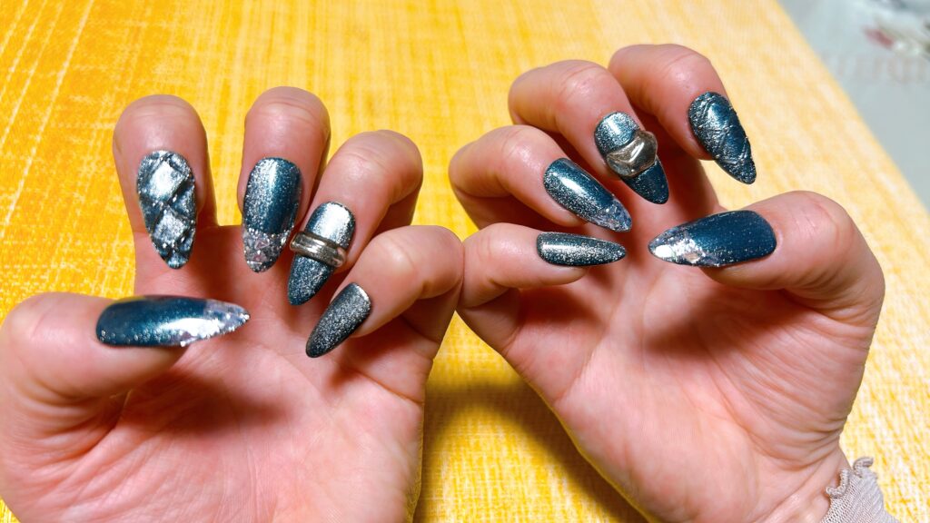 お出かけする用事があったので、先日買ったネイルチップをつけてみました(^^)